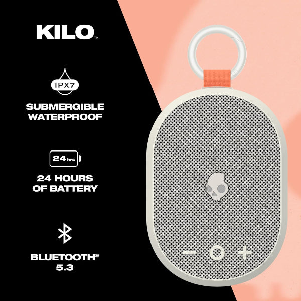 مكبر صوت Skullcandy Kilo اللاسلكي بلوتوث - مكبر صوت بلوتوث صغير مقاوم للماء IPX7 مع بطارية 24 ساعة، مشعاع سلبي موجه لأسفل، وتوصيل لاسلكي حقيقي - مثالي في الهواء الطلق (عظم)