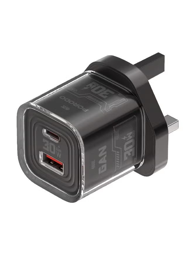 اشحن أجهزتك بسرعة وكفاءة مع شاحن الحائط السريع ثنائي المنافذ من بورودو تيزكلارتيه. يتميز هذا الشاحن الصغير بتقنية GaN المتطورة، ويوفر شحنًا عالي الكفاءة من خلال منفذي إخراج: USB-A وUSB-C. مع قدرة خرج 30 واط، يمكنك شحن عدة أجهزة في وقت واحد دون التأثير على السرعة. يضفي غلافه المقاوم للاشتعال وتصميمه الشفاف لمسة من المتانة والأناقة على تجربة الشحن. سواء كنت في المنزل أو خارجه، يضمن لك هذا الشاحن شحن أجهزتك بسرعة وأمان.