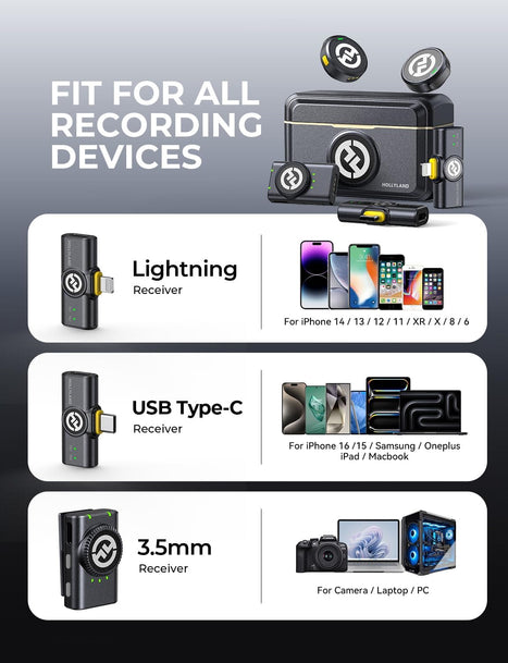 As one of Hollyland’s most popular microphone models, the Lark M2 is trusted by creators for its sound quality, reliability, and portability. This combo gives you a complete, ready-to-use setup—so you can focus on creating without limitations.